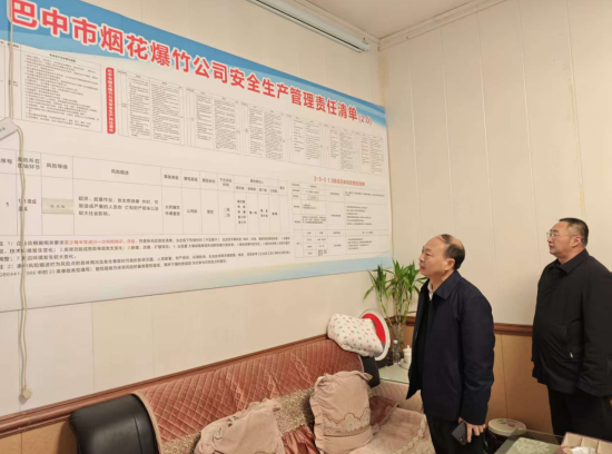 在市煙花爆竹公司,廖爵祿深入倉(cāng)儲(chǔ)庫(kù)房、展示中心,仔細(xì)核查消防設(shè)施配備、安全管理制度落實(shí)、從業(yè)人員安全培訓(xùn)等情況。他強(qiáng)調(diào),煙花爆竹行業(yè)安全風(fēng)險(xiǎn)高、責(zé)任重大,公司要始終把安全生產(chǎn)放在首位,切實(shí)強(qiáng)化安全意識(shí),嚴(yán)格落實(shí)主體責(zé)任,常態(tài)化開展安全隱患排查整治,完善應(yīng)急處置預(yù)案,堅(jiān)決落實(shí)好“工作+安全”要求,守住安全生產(chǎn)底線,確保行業(yè)安全平穩(wěn)運(yùn)行。